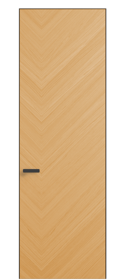 Полотно Рифт в скрытом алюминиевом коробе становится полноценным элементом декора. В коллекции представлено 9 моделей дверей в высоте до 3 метров. Рисунок раскладки шпона варьируется от простого до сложного. «Рубашка» для каждого полотна подбирается вручную по цвету, текстуре и фактуре.