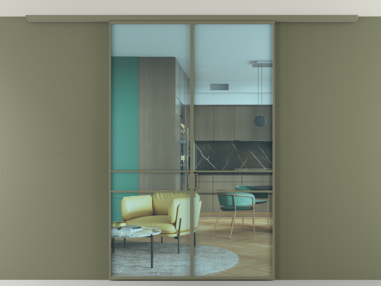 Во всех алюминиевых перегородках, независимо от типа установки, используется компланарный раздвижной механизм, благодаря которому декоративная крышка и полотно находятся в одной плоскости.